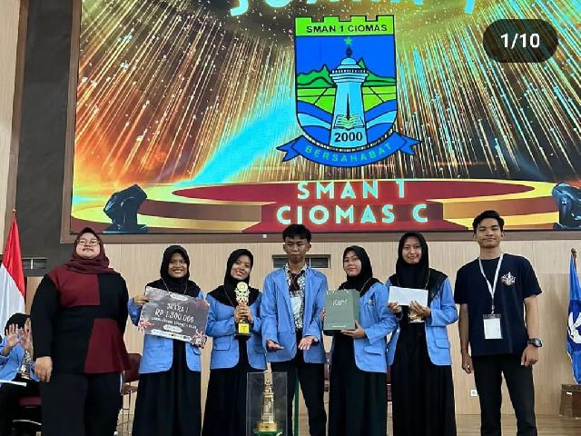 Foto Bersama TIM LCC4 Pilar SMAN 1 Ciomas dengan Pembina, Waka Kesiswaan, dan Guru | Juara 1 LCC4 Pilar Universitas Sultan Ageng Tirtayasa 2024 |